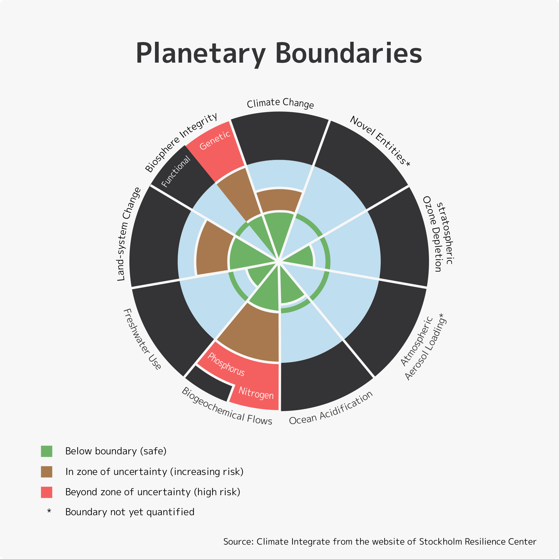In 2009, a group of scientists led by Johan Rockström, an environmental scientist at the Stockholm Resilience Center, and Will Steffen, a chemist at the Australian National University, in a study on “Planetary Boundaries” found that among nine ecosystem limits, nitrogen pollution exceeded boundaries the most. Their report points out that “Human activities now convert more N2 from the atmosphere into reactive forms than all of the Earth’s terrestrial processes combined. … Although the primary purpose of most of this new reactive N is to enhance food production via fertilization, much reactive N eventually ends up in the environment—polluting waterways and coastal zones, adding to the local and global pollution burden in the atmosphere, and accumulating in the biosphere.”