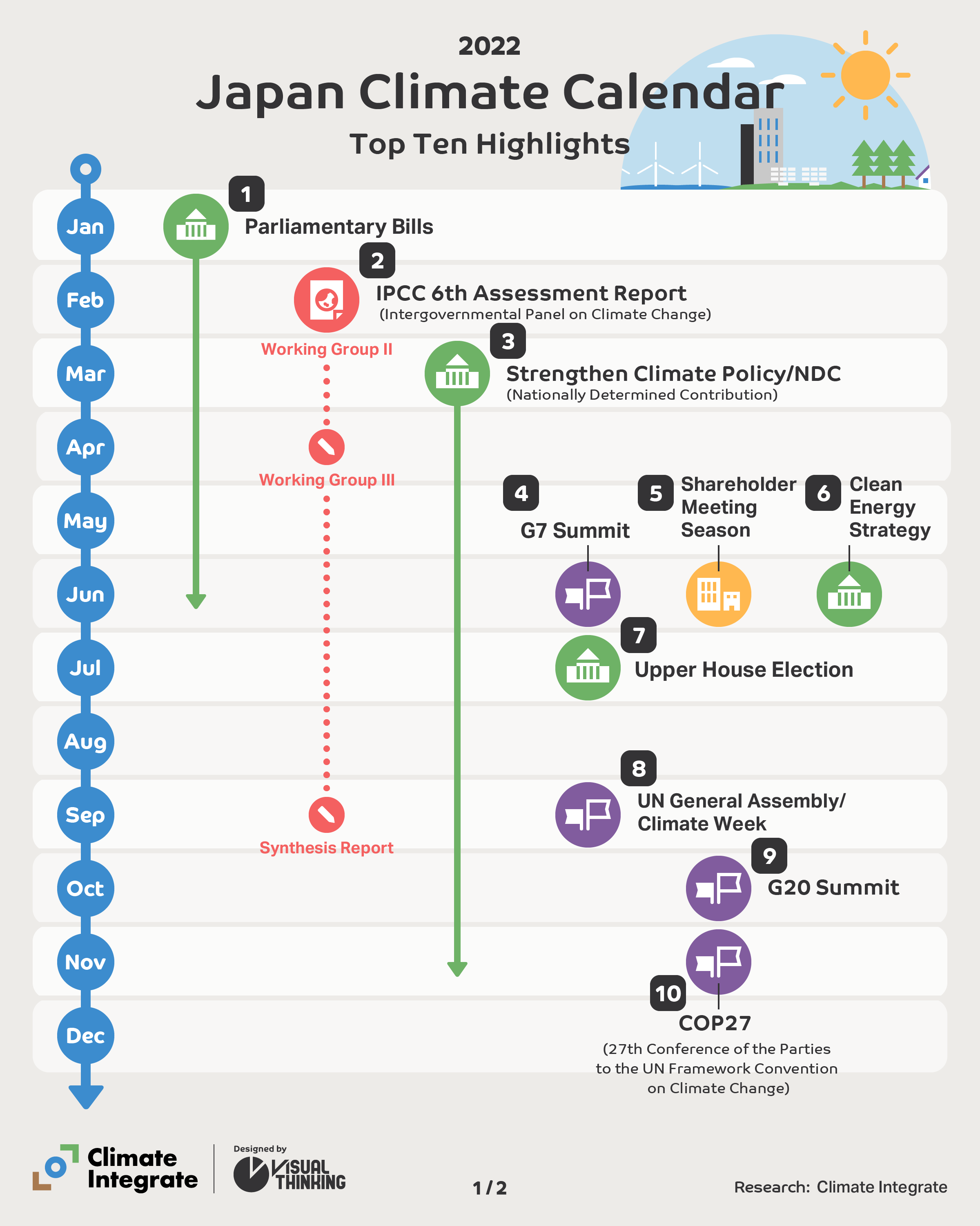 The regular Diet session in 2022 will be debating several items of legislation that are relevant to climate change and energy. Notable among them is the Act on Improvement of Energy Consumption Performance of Buildings, and a bundle of amendments to legislation that could accelerate the shift away from fossil fuels, including the Act on Rationalizing Energy Use.