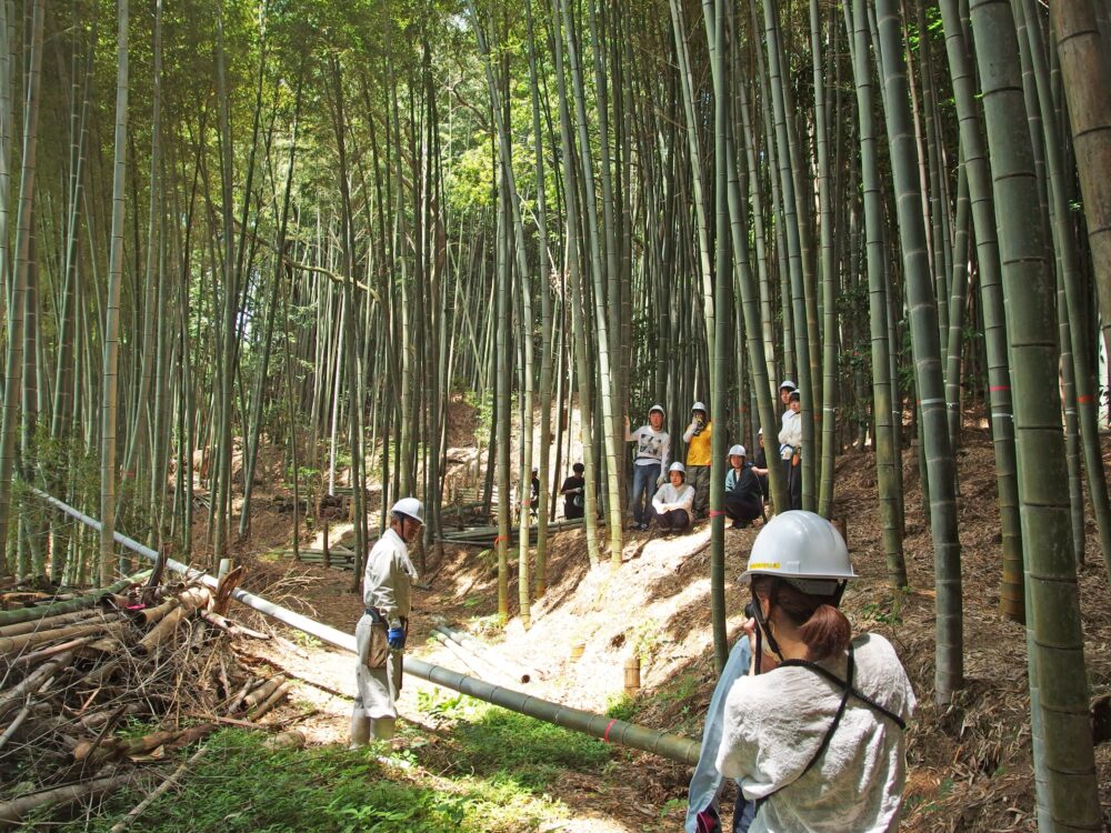 チェックインを済ませた後、「遊びの中に学びがある」という理念をかかげるNPO法人かんなべ自然学校のご協力のもと、竹林整備を体験します。