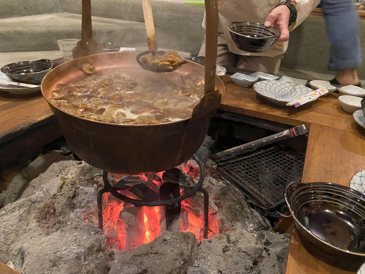 夕食は、「ペンシオーネキタムラ」にて、アグリガーデンで採取したきのこを使った「森のめぐみ鍋」です。