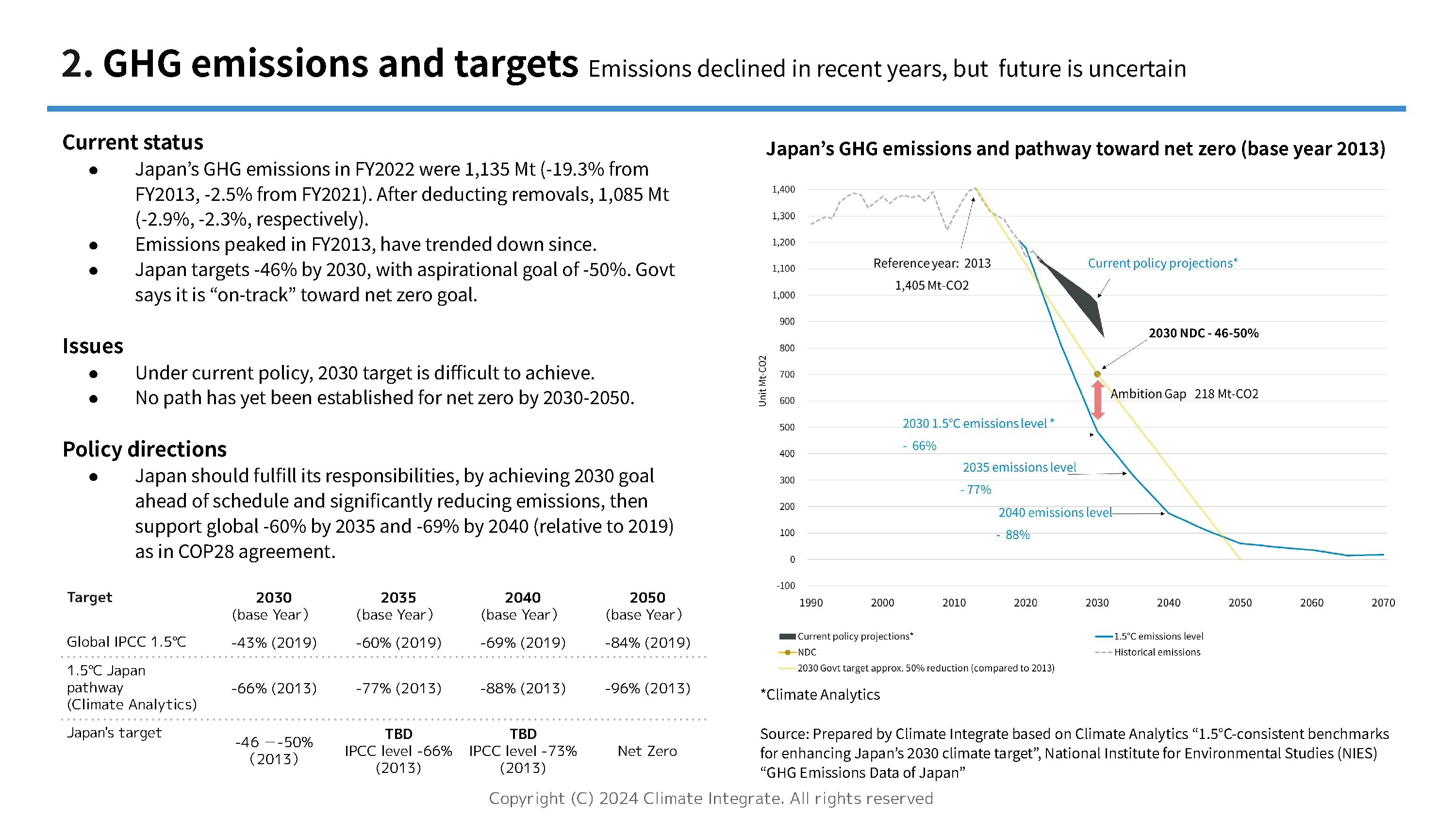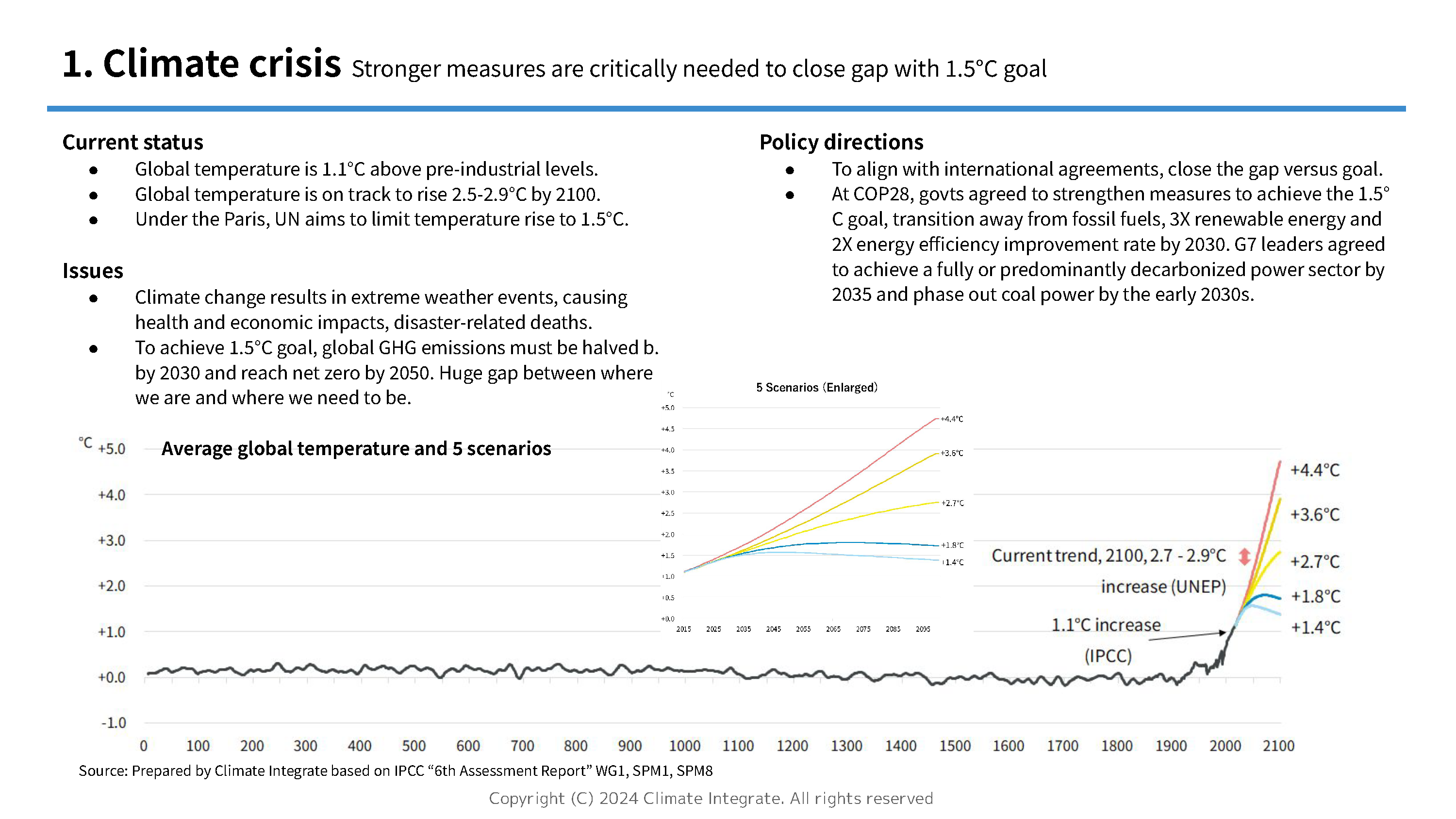 Below we have compiled key facts and issues for these discussions about climate and energy policies, covering current status, issues, and policy directions for each topic. We intend to add more content as needed. (This version July 25, 2024)