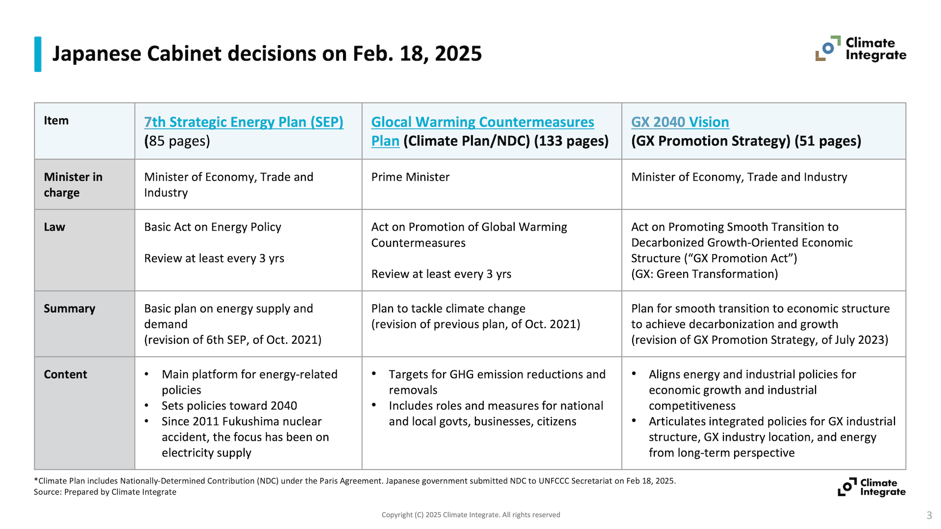 Accompanying this edition of Insights, a video of our “Japan Policy Briefing: Strategic Energy Plan, Climate Plan, GX 2040 Vision” webinar (February 26, 2025) is also available.