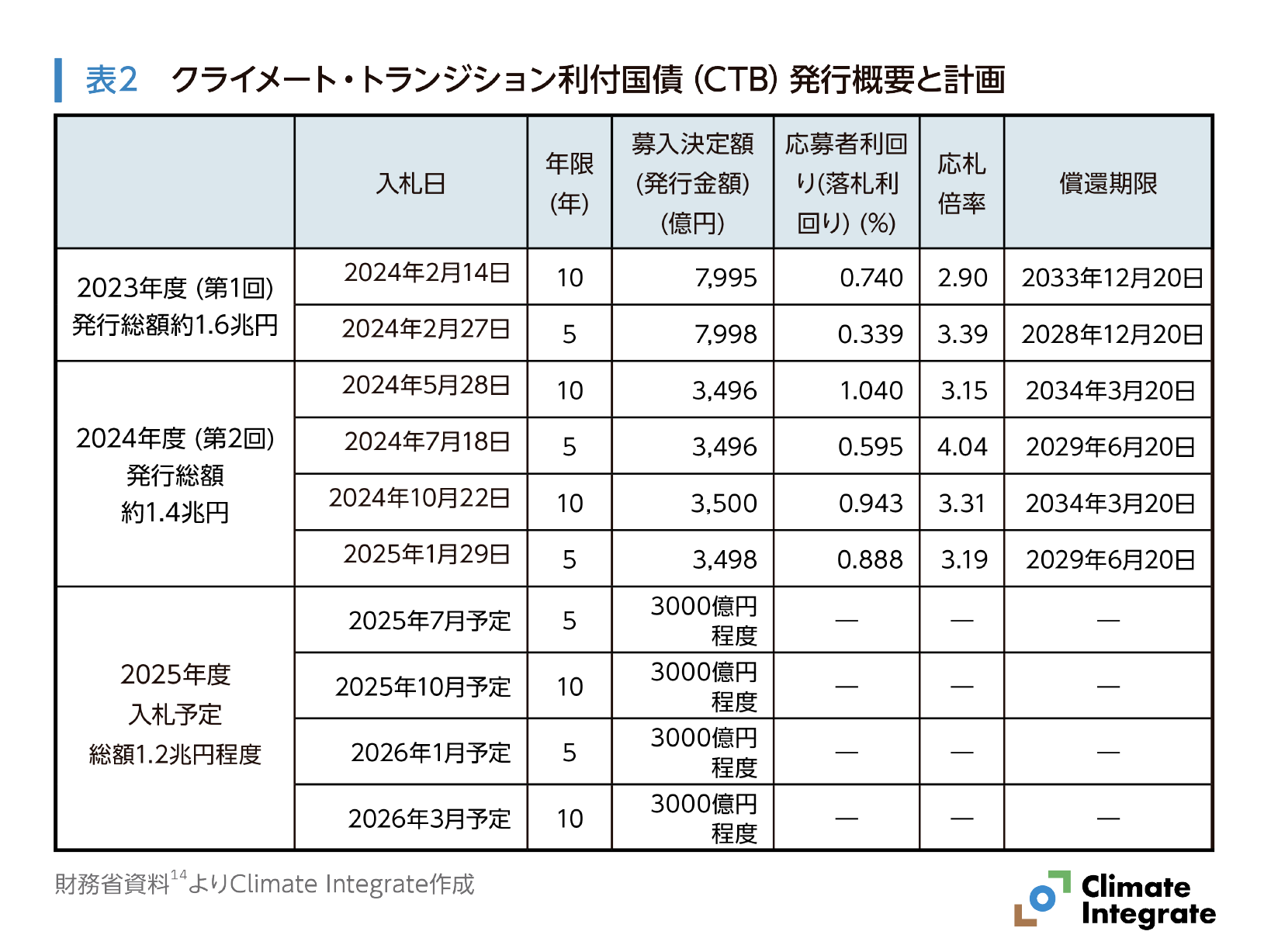 - GX推進対策費の財源であるGX経済移行債は、10年で20兆円発行予定であり、クライメート・トランジション利付国債(個別銘柄として発行されるGX経済移行債)の2023年度の第1回債は計約1.6兆円、2024年度の第2回債は計約1.4兆円が発行され、2025年度は1.2兆円程度の発行が予定されている。年々、発行額は減少している。